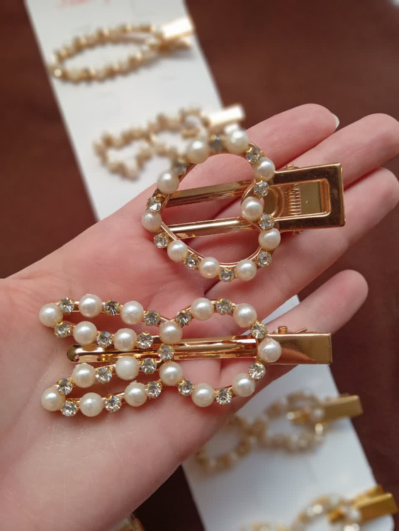 گیره نگینی و مرواریدی طلایی رنگ ثابت