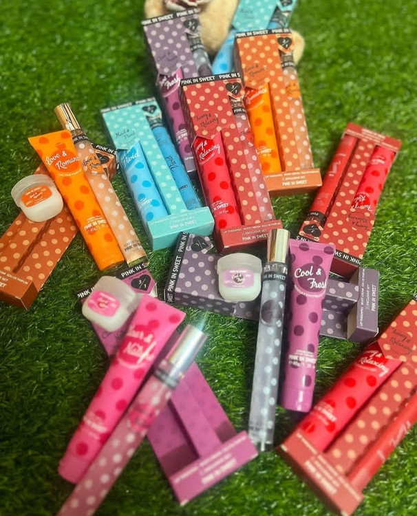 پک عطر قلمی و لوسیون بدن و بالم لب پینک این سوییت در ۵ رایحه