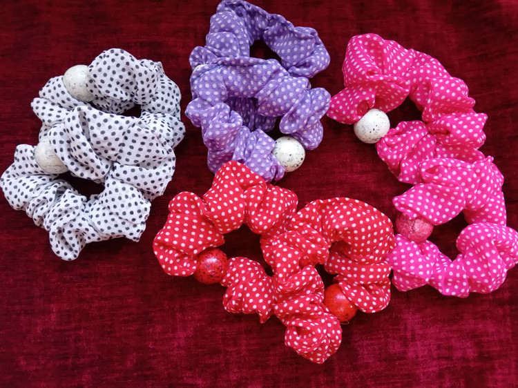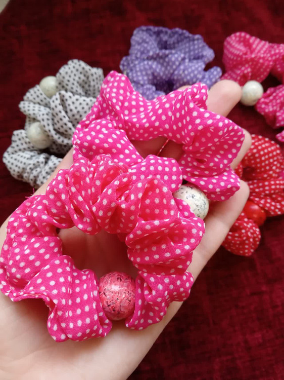 کش مو پارچهای حریر خالخالی مهره دار با کیفیت عالی